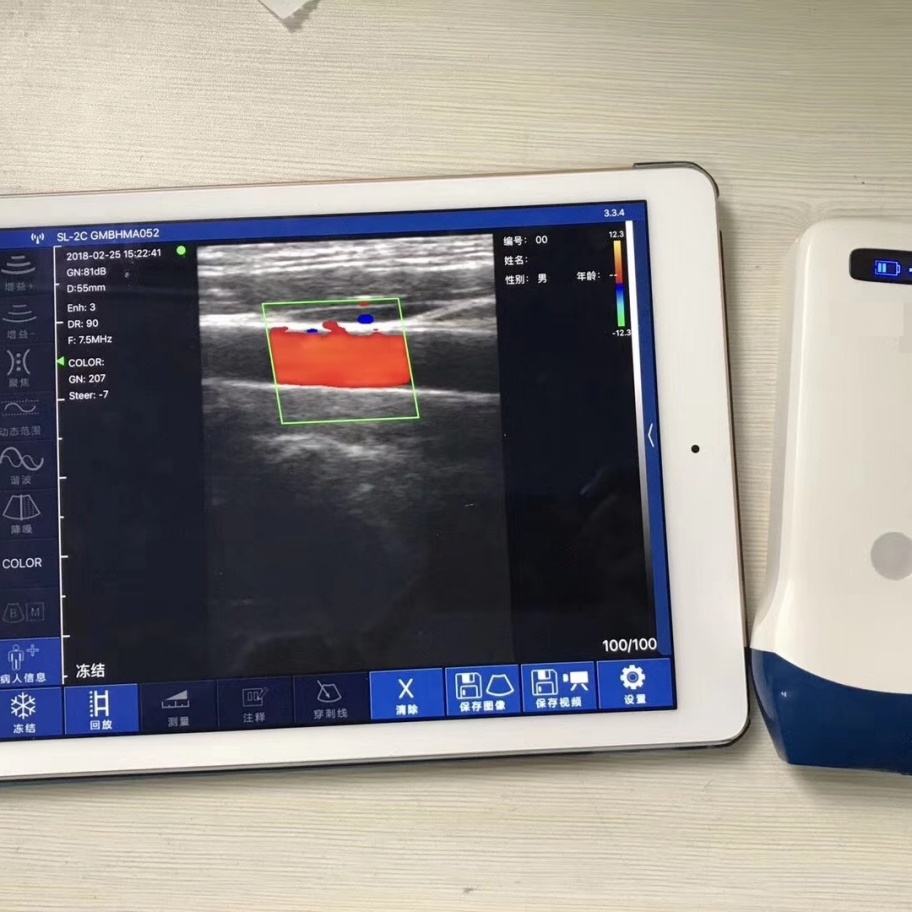 Scanner à ultrasons sans fil portable à sonde linéaire Doppler couleur, scanner à ultrasons linéaire pour hôpital, scanner à ultrasons sans fil à 128 éléments, scanner vétérinaire CU12
