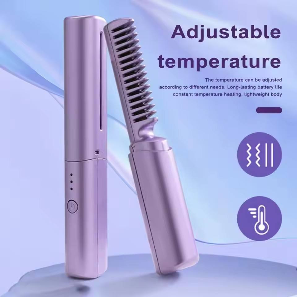 Portable Wireless Electric Hair Brushes Heating Straight Curly Negative Ion Hot Straightener Comb USB Charge Home Travel Women