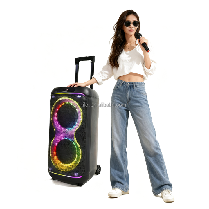 Enceinte portable sans fil pour DJ, karaoké, studio, double haut-parleur 8 pouces, basses puissantes, LED RGB, utilisation extérieure, scène, ordinateur, IFeiGift 2845