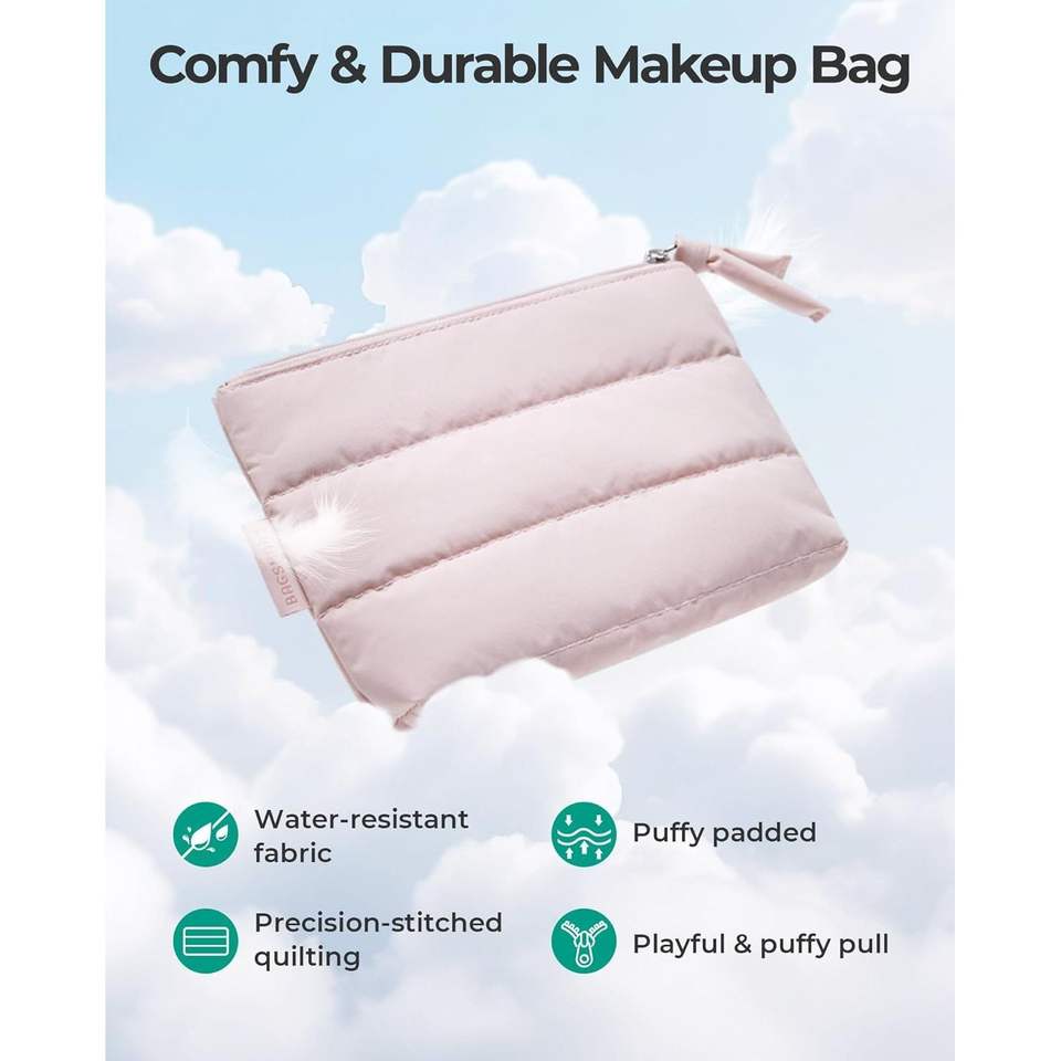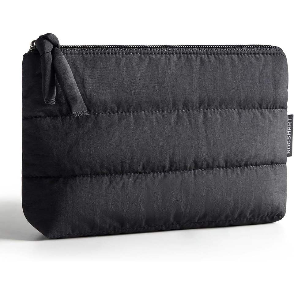 Pochette de maquillage portable pour femme, petite trousse de voyage résistante à l'eau avec fermeture éclair décorative, sac et étui à cosmétiques matelassés