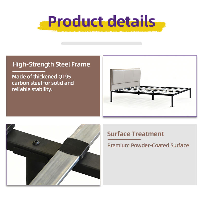 Cadre de lit portable en fer forgé, lit plateforme métallique simple ou double détachable pour la maison, la chambre, l'hôtel, l'hébergement et le bureau