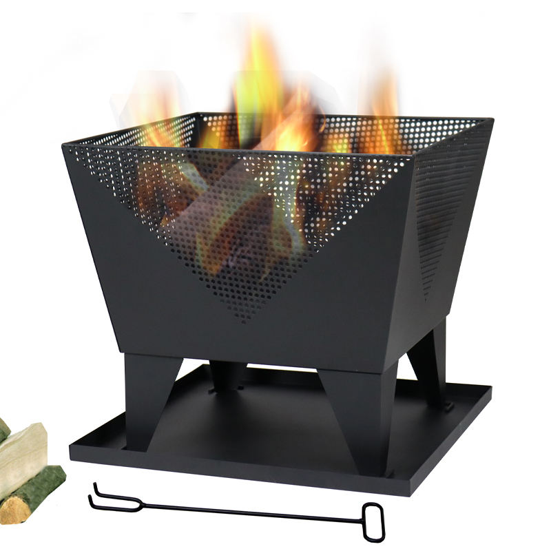 Foyer en métal extérieur carré portable avec plaque de cendres au bois dans le jardin et le patio Brazier