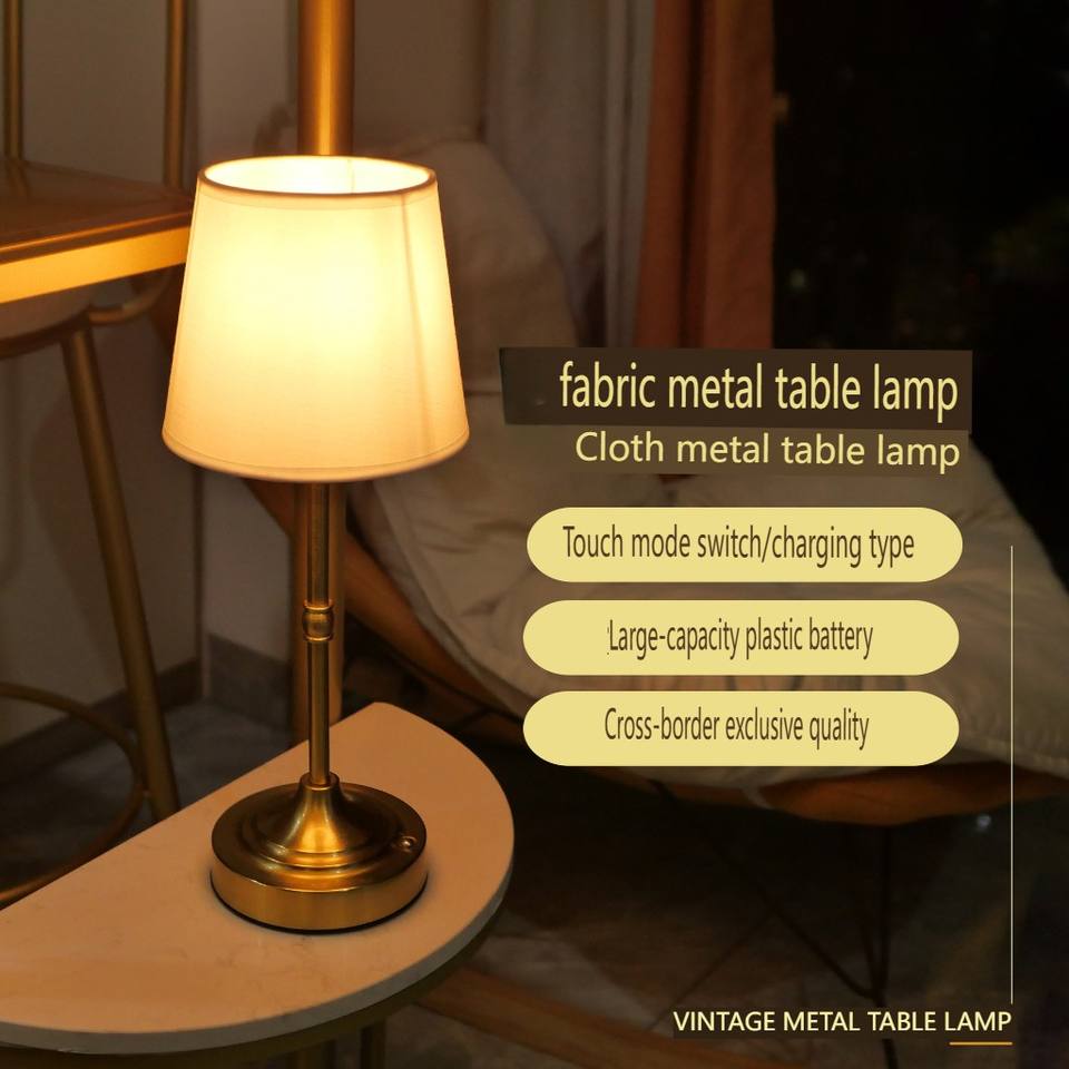 Lampe de table sans fil portable, abat-jour en tissu, lampe de bureau, batterie rechargeable 5200mAh, éclairage alimenté par batterie, lumière à intensité variable