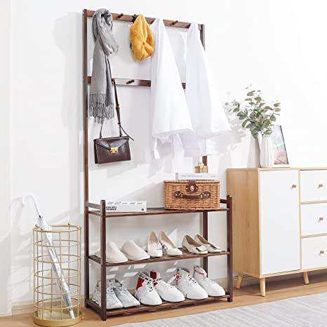 Porte-manteau Porte-manteau Porte-manteau Arbre de hall Porte-chaussures en bambou Organisateur de rangement avec porte-manteau et cintre