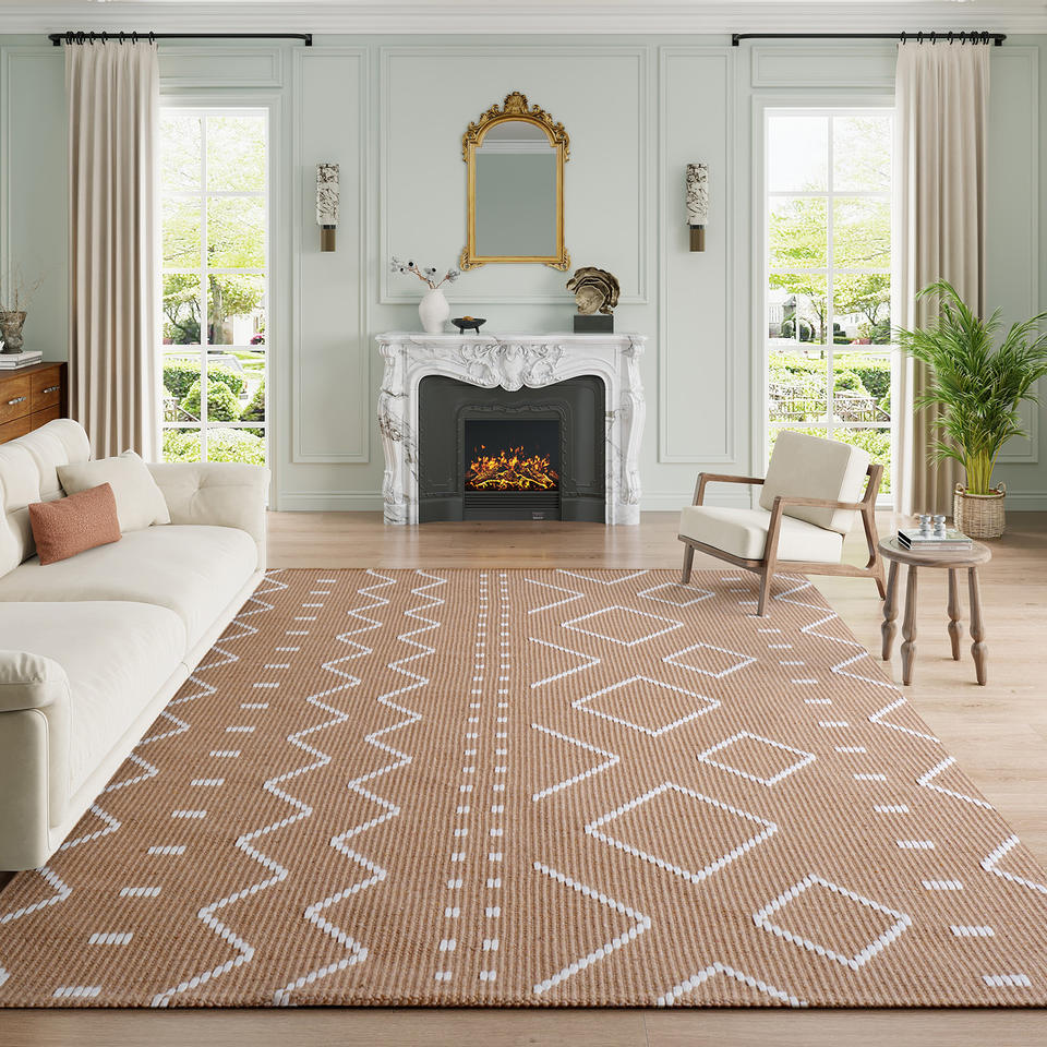 Tapis géométrique rectangulaire Porter 8x10 antidérapant style bohème pour salon et chambre à coucher, marron, polyester et coton