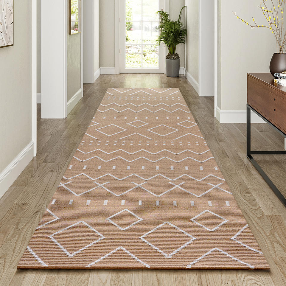 Tapis de couloir géométrique rectangulaire antidérapant en polyester et coton marron pour la maison, le salon et la chambre