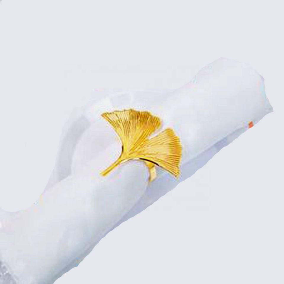 Design Portugal incroyable anneaux de serviette en forme de pli à Double feuille décoration métal or vente en gros anneau de serviette en feuille de Ginkgo