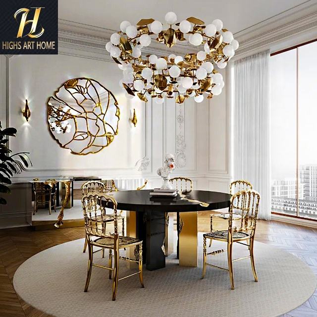 Portugal Modern Light Luxury Art Gourd Festival Brass Chair High-Grade Living Room Single Dining Chair for Villa Dining Room