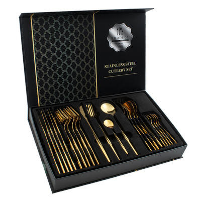 Vaisselle portugaise Western couteau à steak en acier inoxydable fourchette cuillère 24 pièces ensemble cuillère boîte-cadeau couverts en acier ensembles de couverts en or