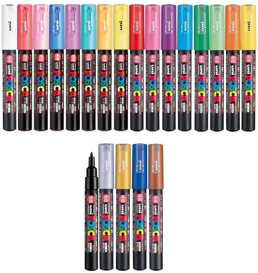 Ensemble de marqueurs de peinture Posca GAMME complète, Mitsubishi Poster Color ALL COLOR Stylo de marquage Pointe extra fine PC-1M