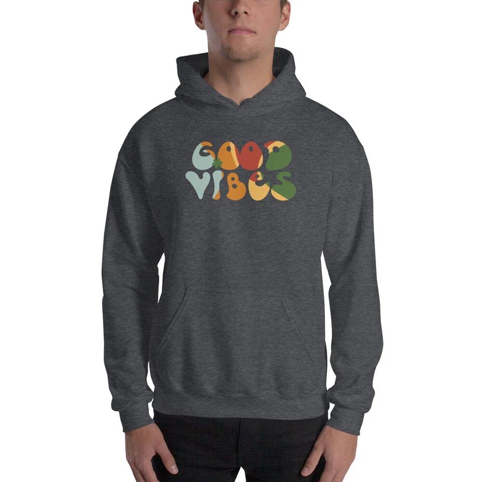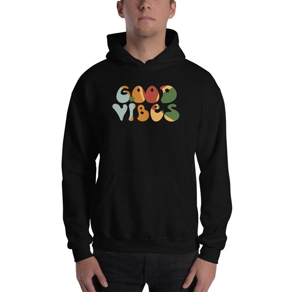 Sweat à capuche en molleton surdimensionné 100% coton brodé, design vintage, Positive Good Vibes Only, pour femmes et hommes