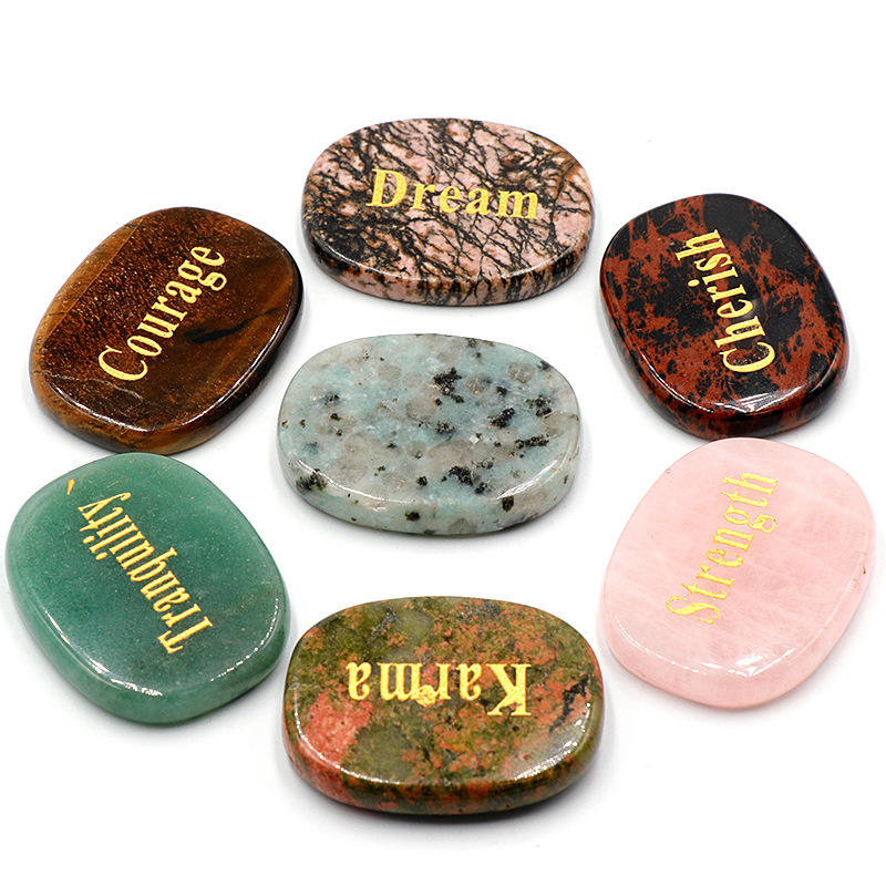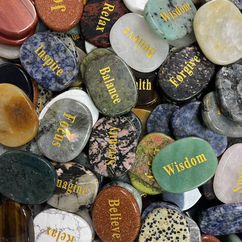 Mots positifs Worry Palm Pocket Stone, pierres de mots inspirantes gravées, cristaux de guérison de galets plats Pierre précieuse Love Luck Joy