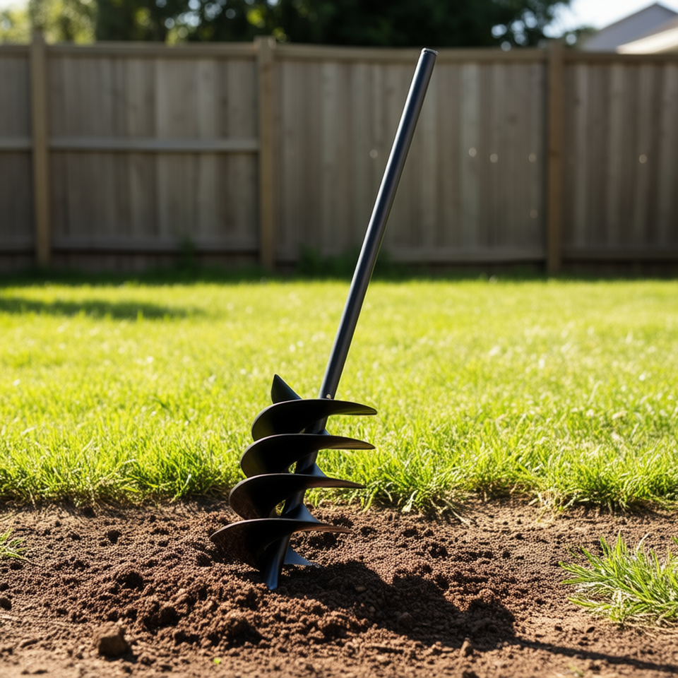 Pelle à trous manuelle en acier avec tige de 5 pouces, poignée noire et tube d'extension de 7,87 pouces pour le jardinage