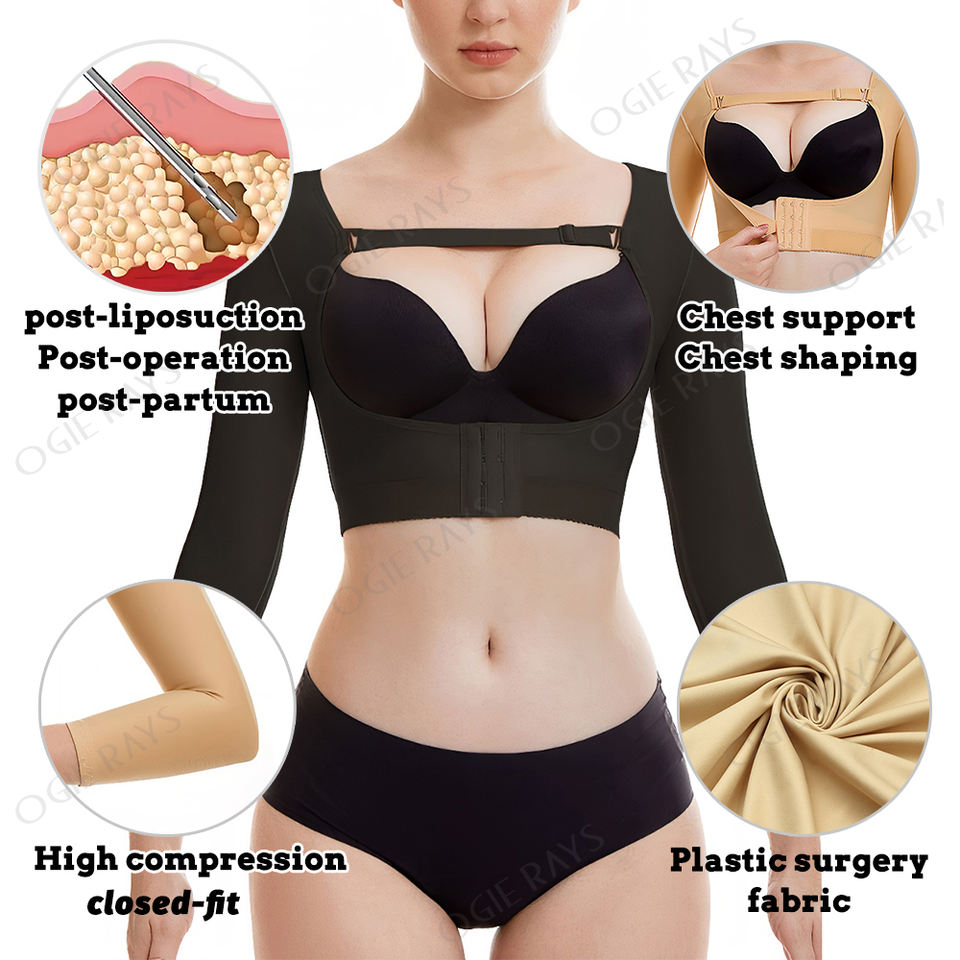 Vêtement de compression post-liposuccion, étape 1 et 2, façonneur de bras, bande de compression thoracique, corset, bustier, manches longues, fajas, vêtements de maintien