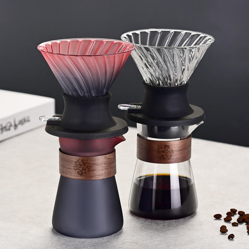 Cafetière à Verser 600 ml Carafe en Verre Borosilicate avec Filtre à Café en Verre Poignée en Noyer et Couvercle en Verre Ensemble de Cafetière à Verser