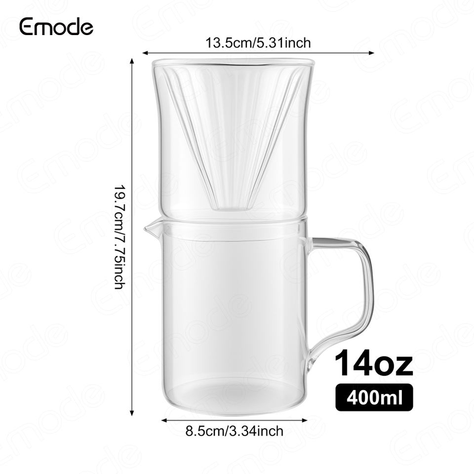 Cafetière à filtre à dégoulinement, 400 ml, cafetière à filtre à dégoulinement avec filtre en verre, cafetière portable en verre, cafetière à tasse unique