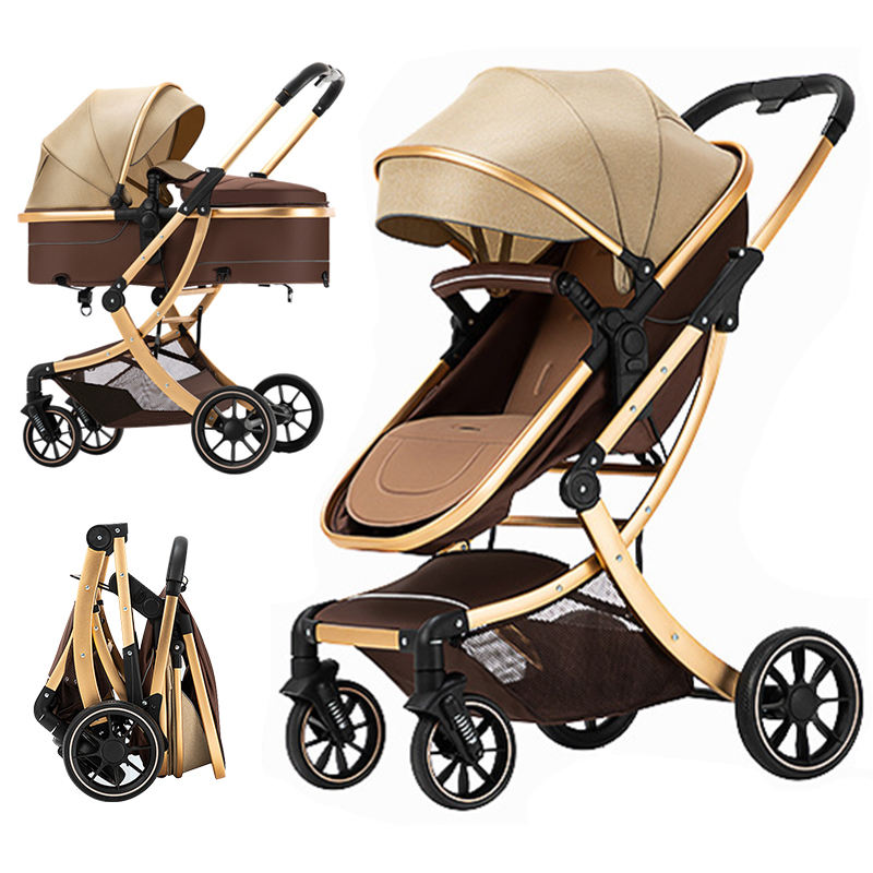 Poussette bébé 3-en-1 avec siège réversible, cadre en alliage d'aluminium, 4 roues, pliable compact, système de voyage pour bébé