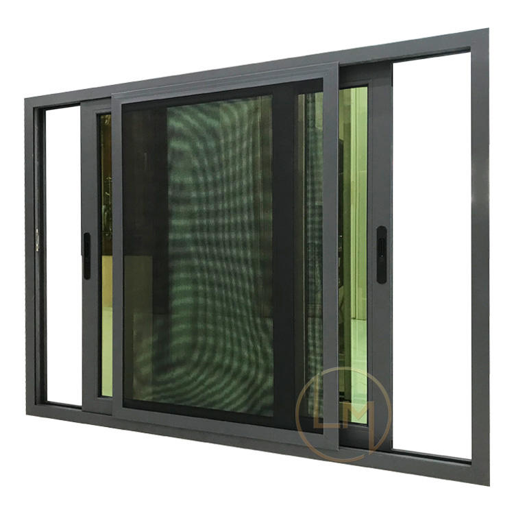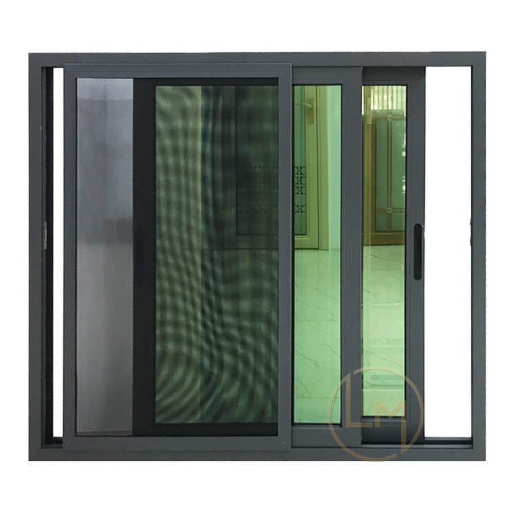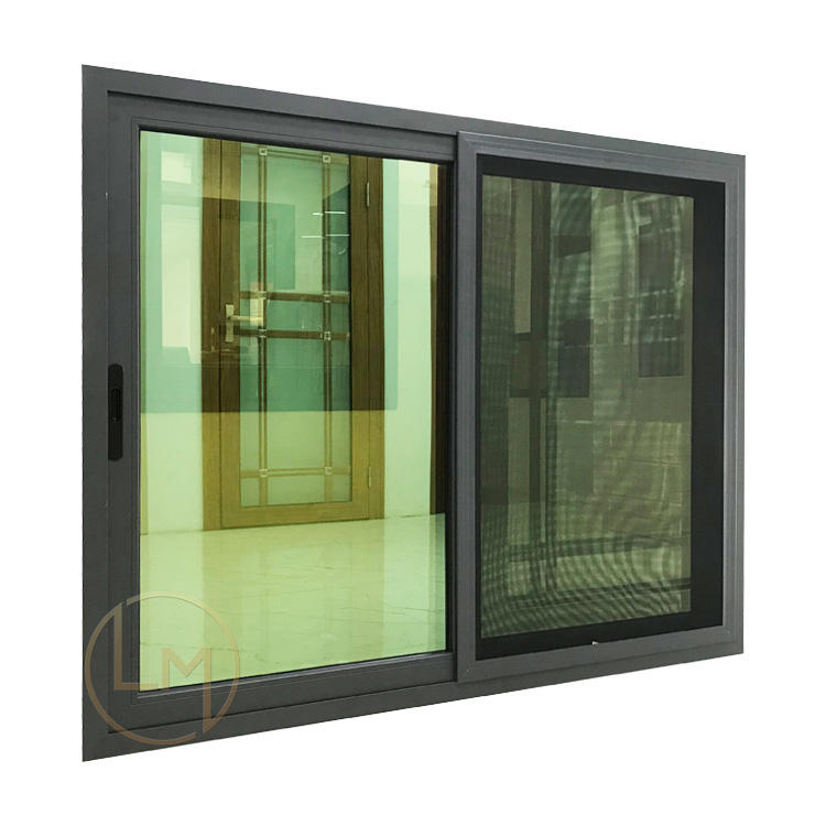 Fenêtres coulissantes en aluminium thermolaqué Fenêtres coulissantes en aluminium noir à simple vitrage Fenêtre coulissante en verre pour bureau