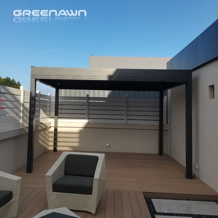 Pergola d'extérieur motorisée avec revêtement en poudre, kits de pergola en métal pour toit électrique en aluminium moderne