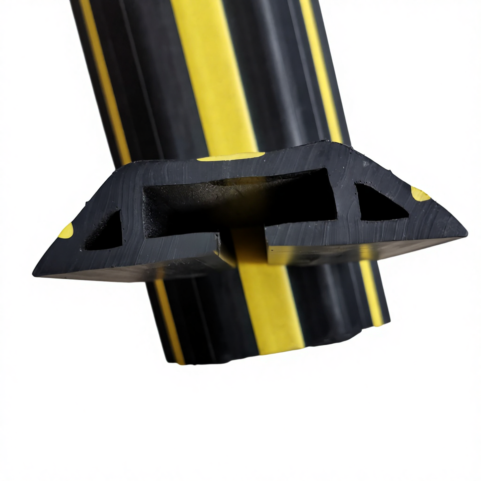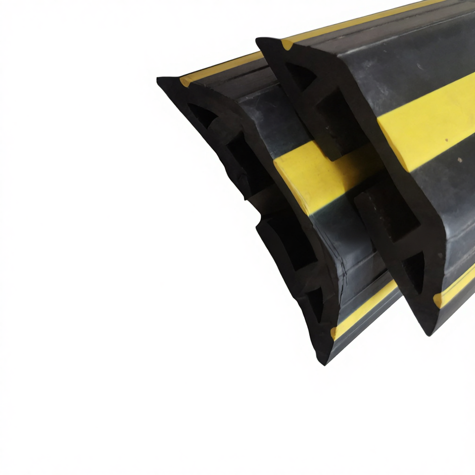 Goulotte de câbles en acier inoxydable thermolaqué avec bandes décoratives antidérapantes et anti-écrasement, pour sol souple, ignifuge, pour gestion des câbles