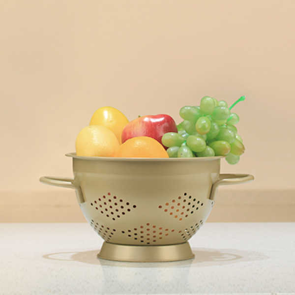 Ensemble de 3 passoires en acier thermolaqué avec manche en bois - Doré durable