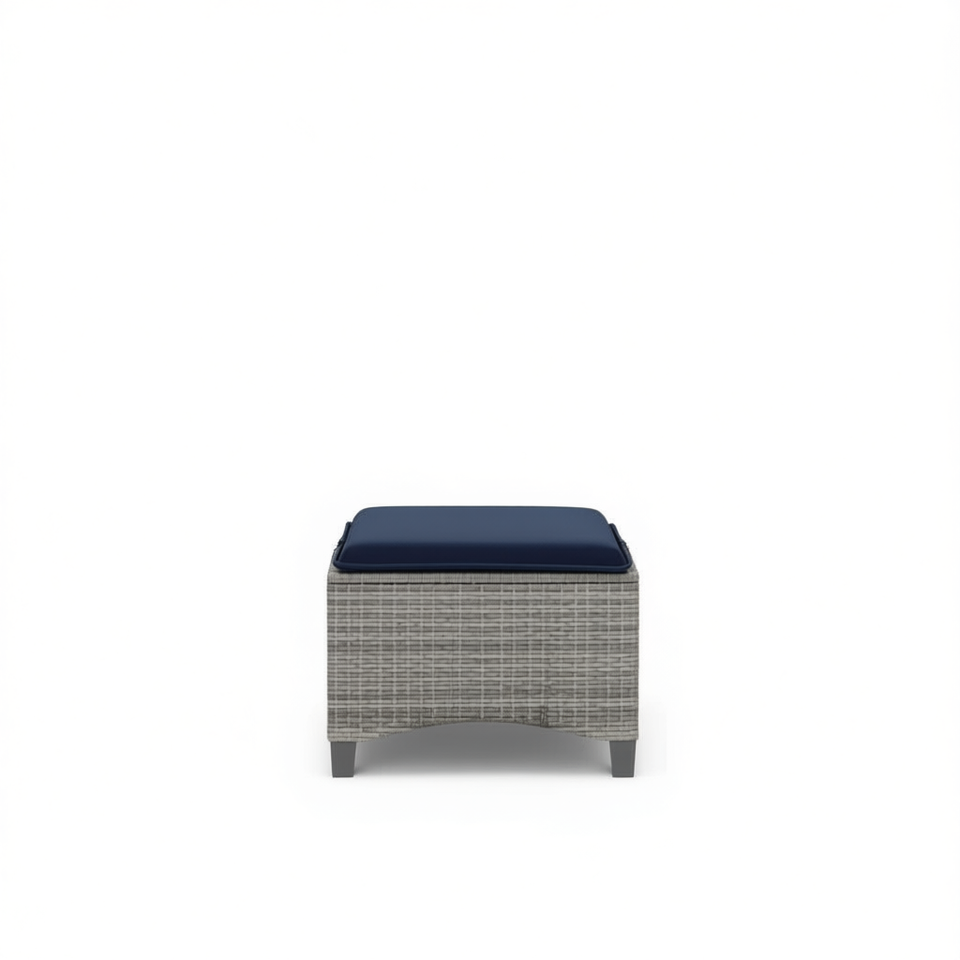 Tabouret de jardin en rotin PE gris avec coussin en mousse, mobilier d'extérieur au design contemporain, pieds coniques, taille standard