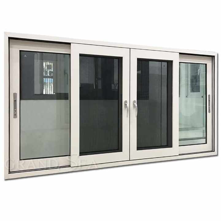 Fenêtre coulissante double vitrage en aluminium de grande taille, couleur blanc, avec revêtement en poudre