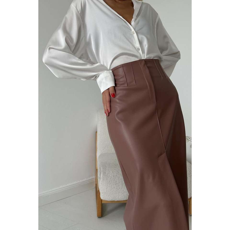 Jupe rose poudré brillante avec fente décorative – Accessoire de mode en gros