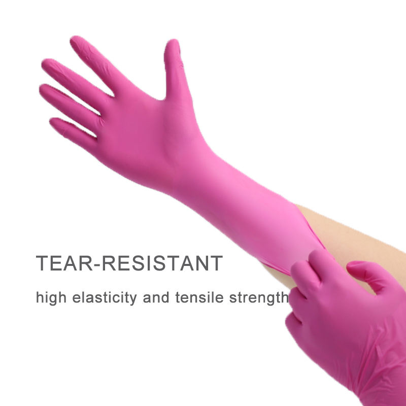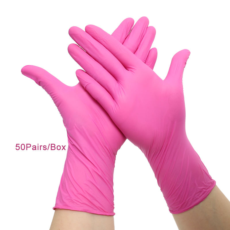 Powder-free Pure Nitrile Disposable Gloves 3mil 4mil 5mil Durable Food Grade Waterproof Pink XS-S-M-L-XL Kitchen Cleaning