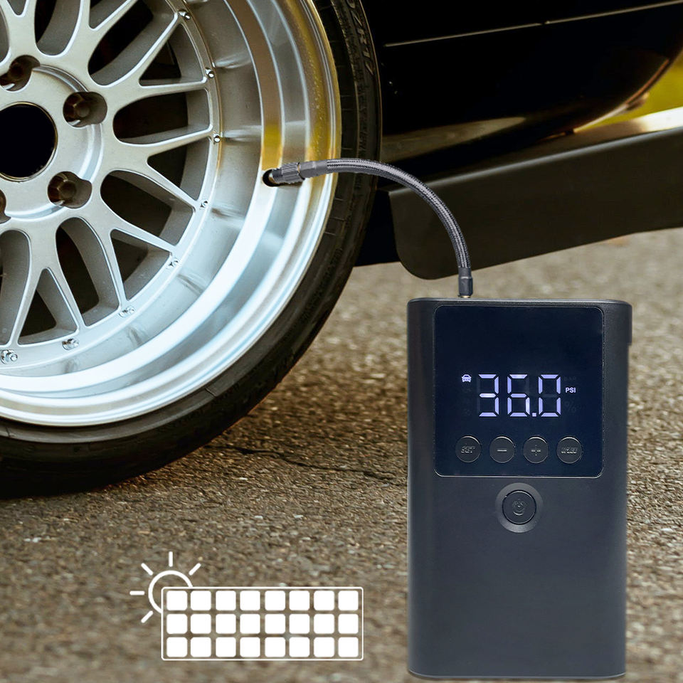 Banque d'alimentation, gonfleur de pneus de voiture, lumière LED, énergie solaire, démarreur de voiture d'urgence multinational, système solaire
