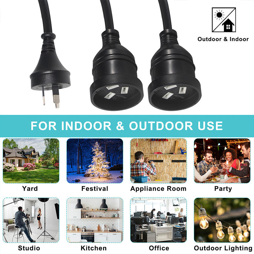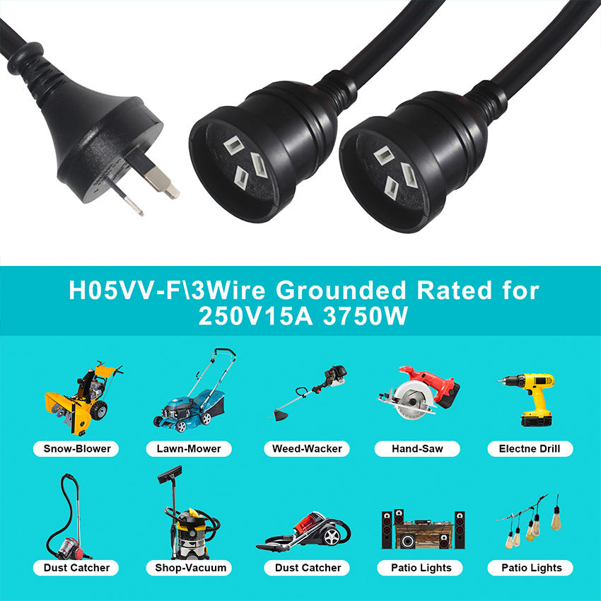 Rallonge électrique 3M 1 à 2 prises avec mise à la terre, double prise, fil de 3 x 1,5 mm², prise standard australienne pour la maison et le bureau