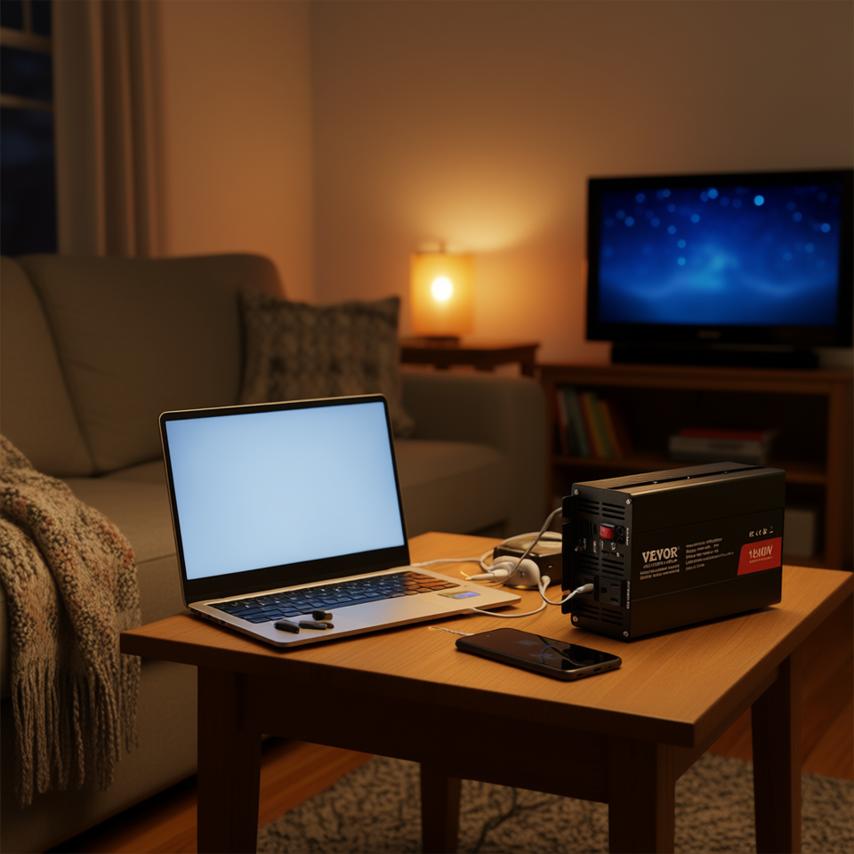 Convertisseur d'énergie 1500W DC 12V AC 120V 2 prises AC 2 ports USB Type C Petit modèle pour usage domestique