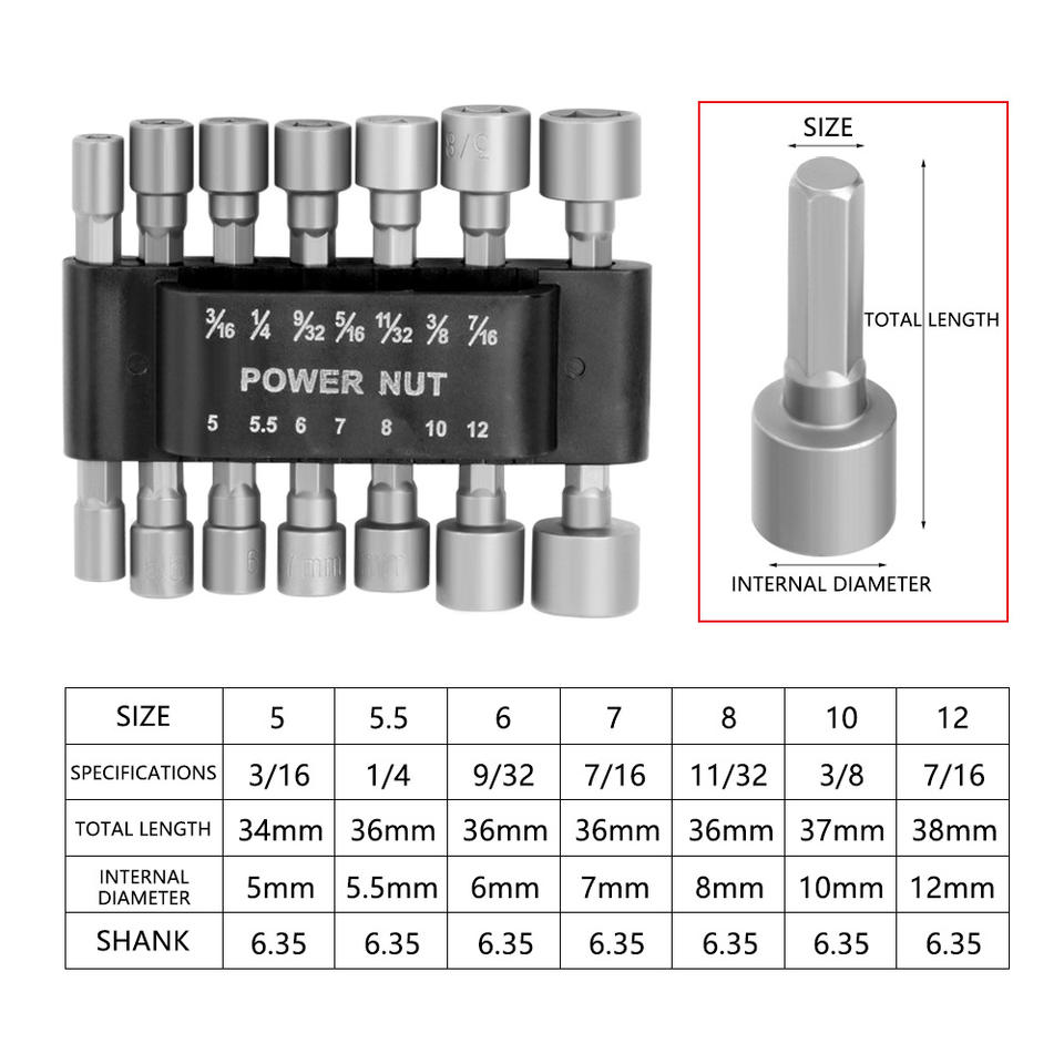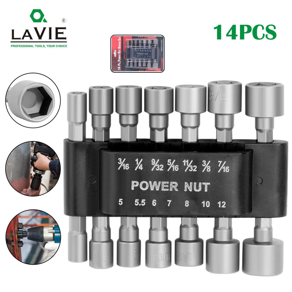 Jeu de douilles Power Nut, 14 pièces, tige hexagonale de 6,35 mm pour perceuses électriques