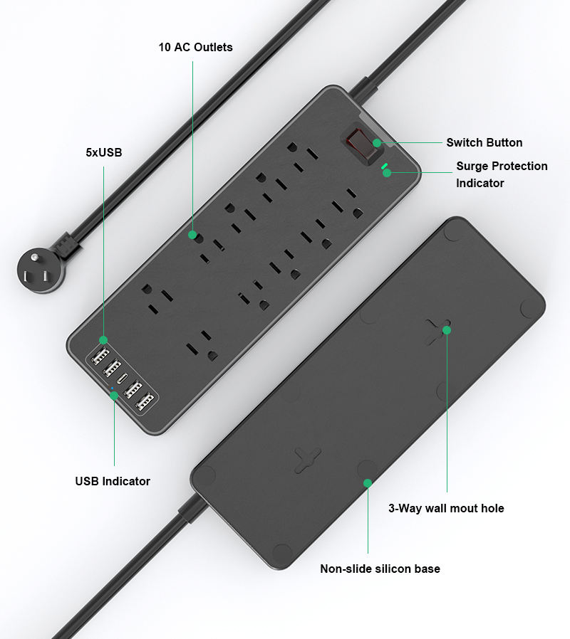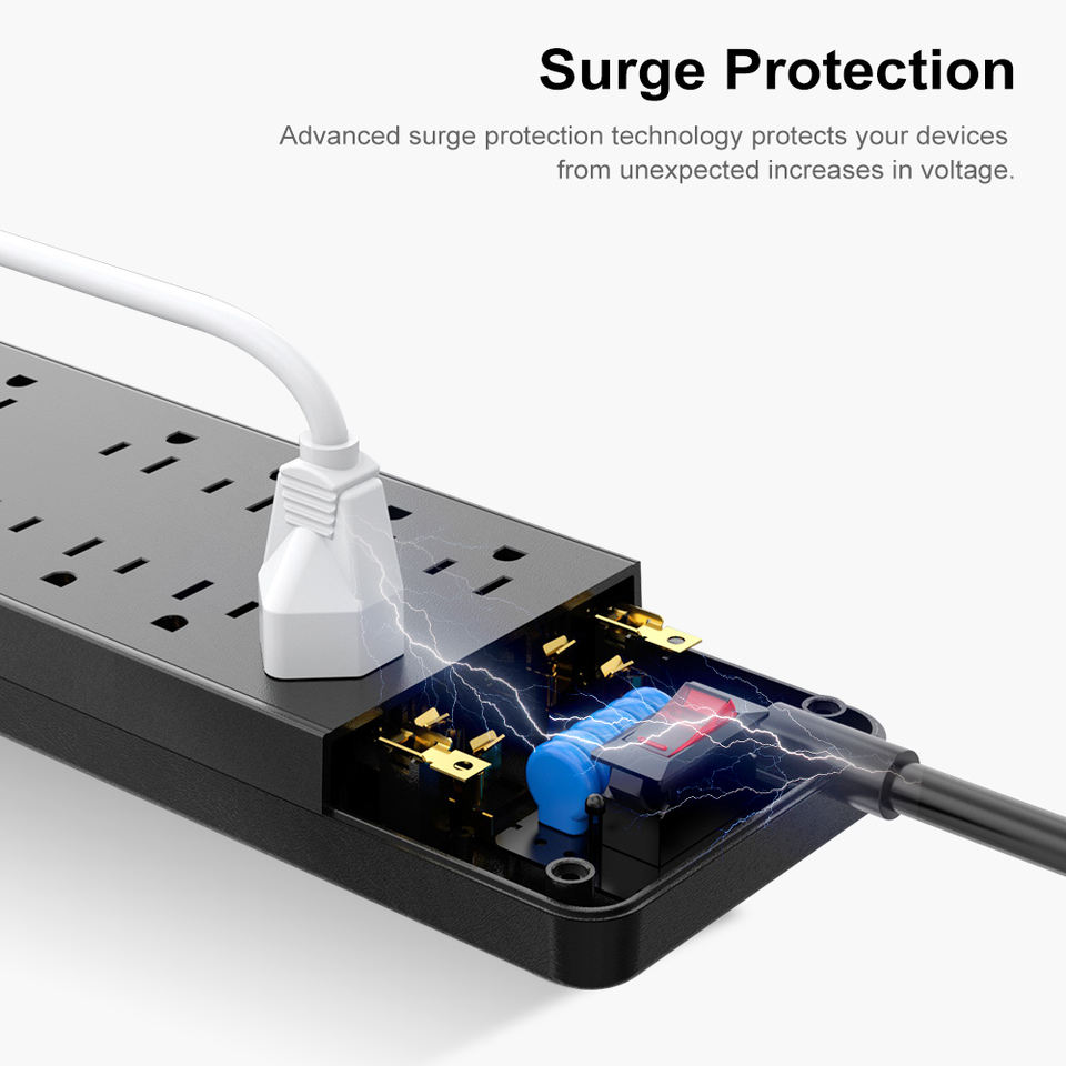 Power Strip Surge Protector Extension Cord with 1.8m/6ft 2.08mm 16A Plug with Socket Standard Grounding Lightning Protection