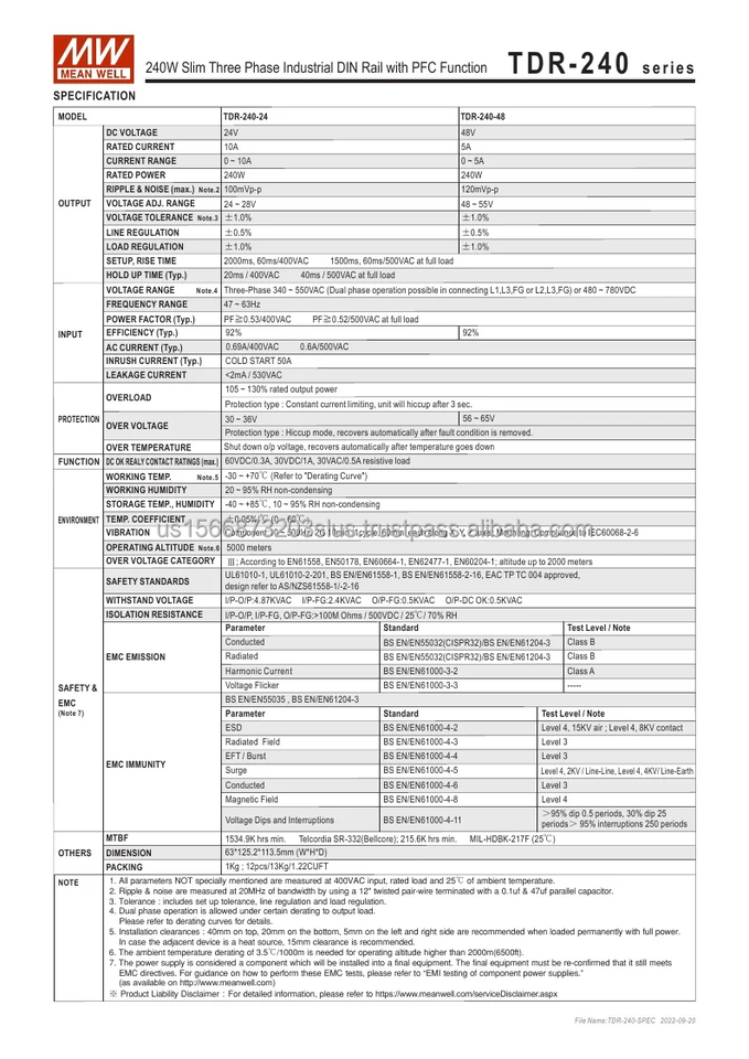 Power Supply TDR-240 TDR-240-24 TDR-240-48 Industrial Control Systerm Three Into Thin DIN Rail Mounting Power Supply 24V 48V