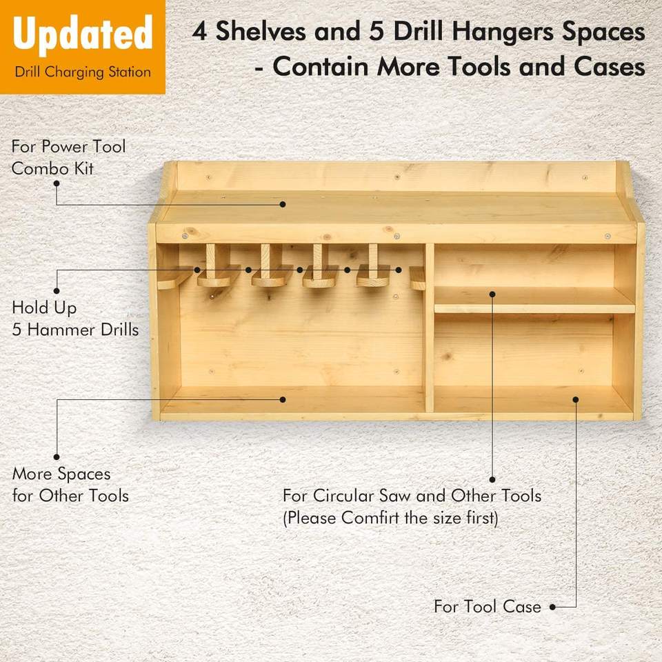 Organisateur de rangement pour outils électriques, Station de charge de perceuse avec 5 fentes de suspension, porte-outils de jardin mécanique, support mural de garage