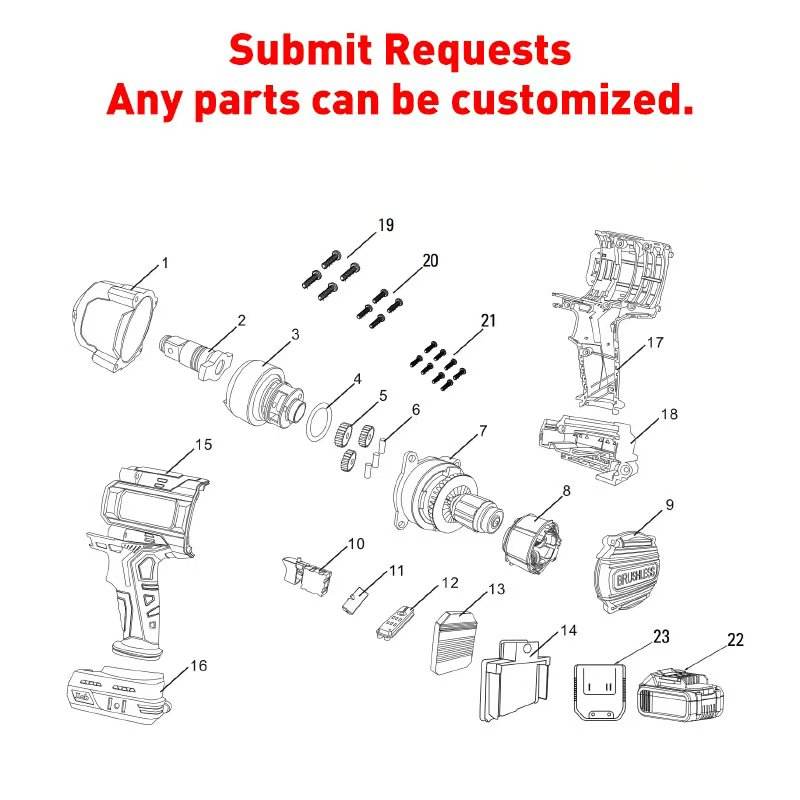 Clé à chocs sans fil réglable à couple de puissance Clé à chocs électrique sans fil 21V à batterie sans balais