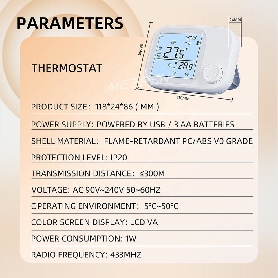 Thermostat intelligent alimenté par USB / piles AA, contrôle par application Tuya Smart Life, RF 433 MHz, chaudière à gaz, eau, chauffage au sol électrique