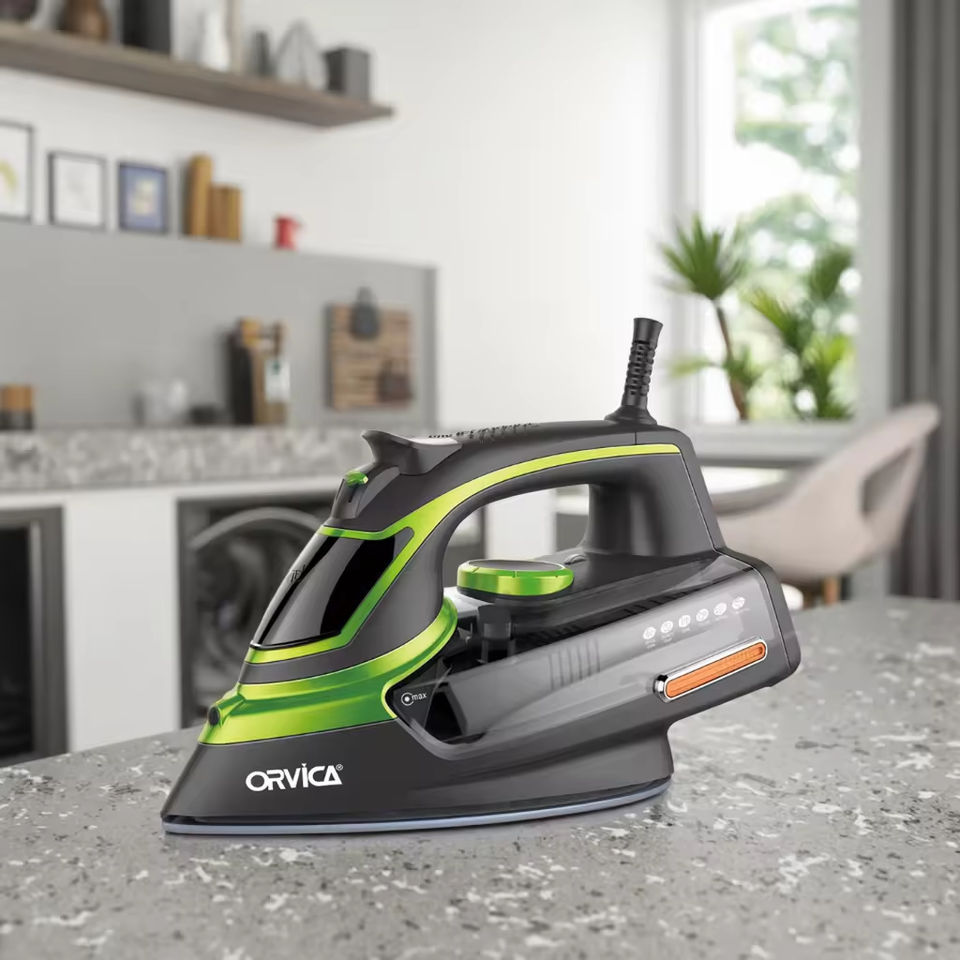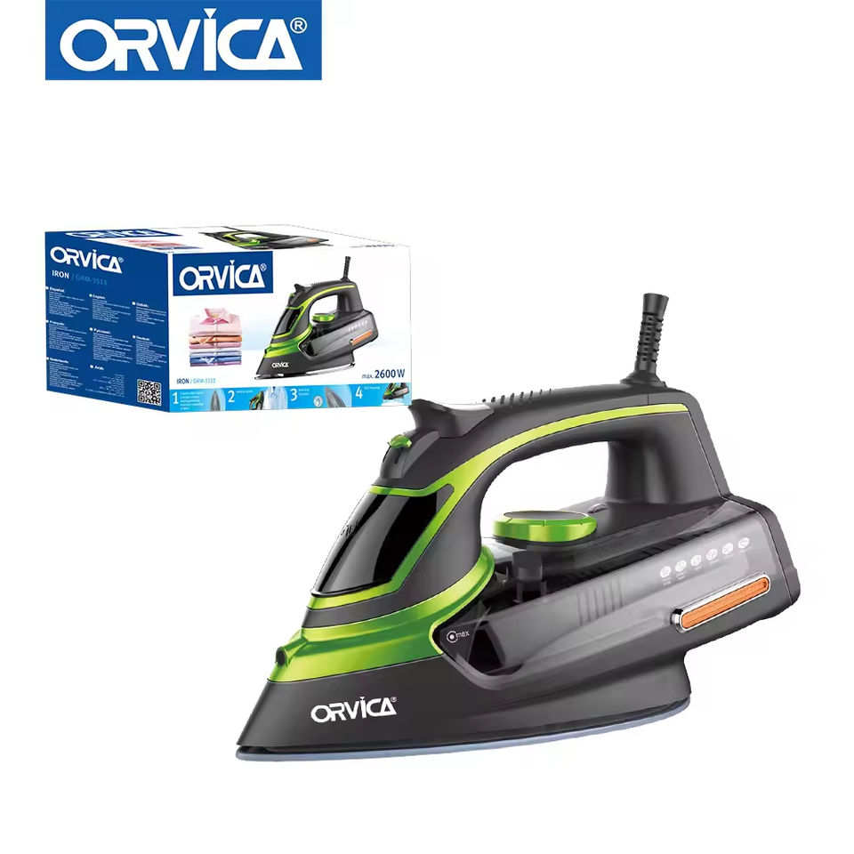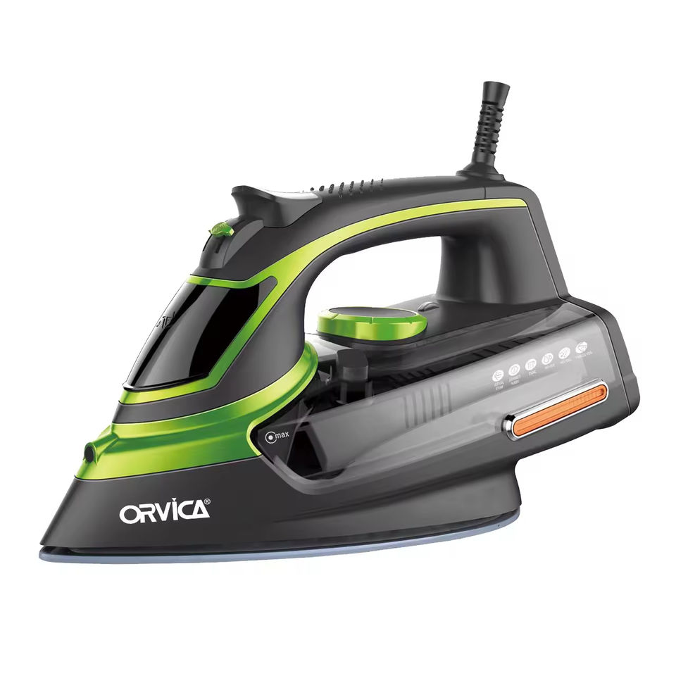 Fer à vapeur électrique puissant avec semelle en céramique, pulvérisation d'eau et fonction vapeur verticale