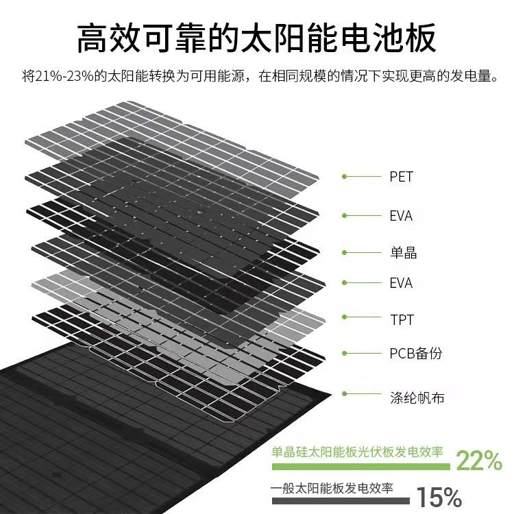 Panneau solaire pliable Powerkimjo 60W 18V monocristallin, sac de charge extérieur pour le camping et l'alimentation d'urgence