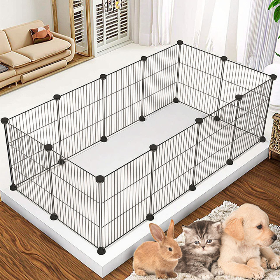 Pratique bricolage pliable grille Pet Cage clôture bouton Portable intérieur lapin enceinte modulaire combinaison Cage pour petits animaux