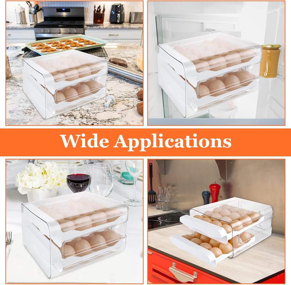Boîte de rangement d'œufs pratique pour la famille, vente en gros, support double pour œufs de cuisine domestique
