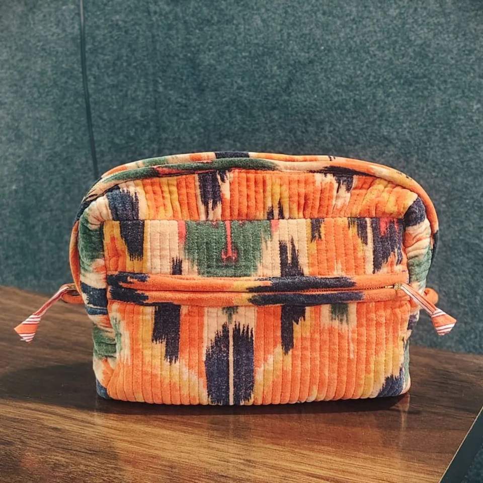 Pochette pratique en velours de coton imprimé à la main avec motif géométrique pour le rangement ou l'organisation