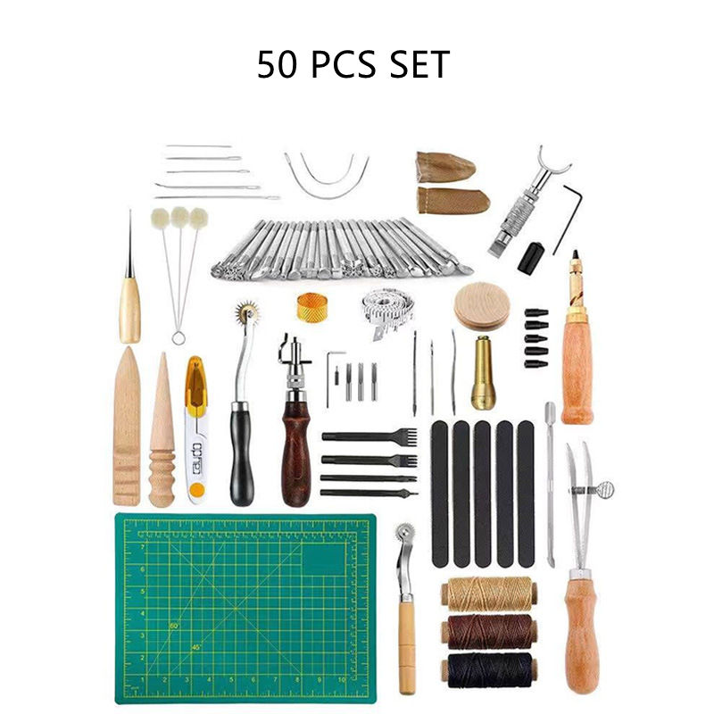 Outils pratiques en cuir 50 pièces Kit de couture artisanal complet Kit d'artisanat professionnel pour la reliure couture travail du cuir