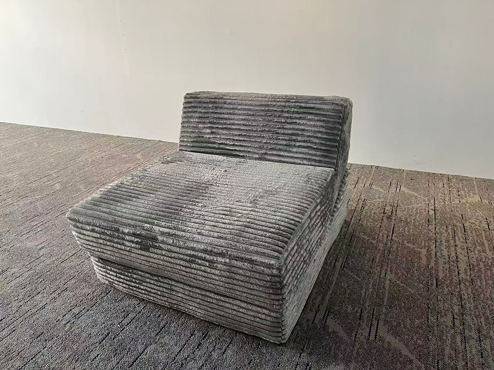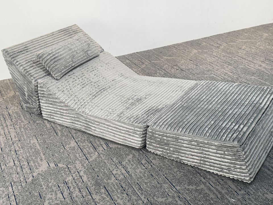 Canapé modulable transformable et compressible à trois places, en velours côtelé rayé gris, multifonctionnel pour l'assise, villa, école