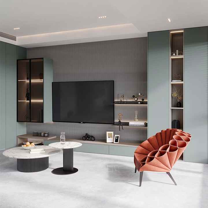 Meuble TV en bois au design moderne et élégant, avec éclairage LED, compartiments de rangement spacieux, idéal pour les appartements, les hôtels et les salons.