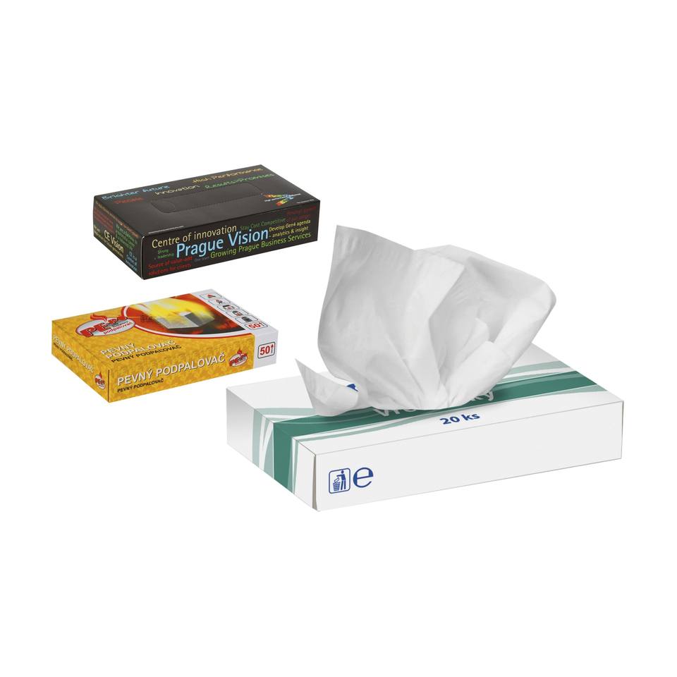 Boîte de mouchoirs Prague Vision White Label au design moderne, 20 mouchoirs en papier blanc doux, fabrication italienne, pratique pour la maison et le bureau