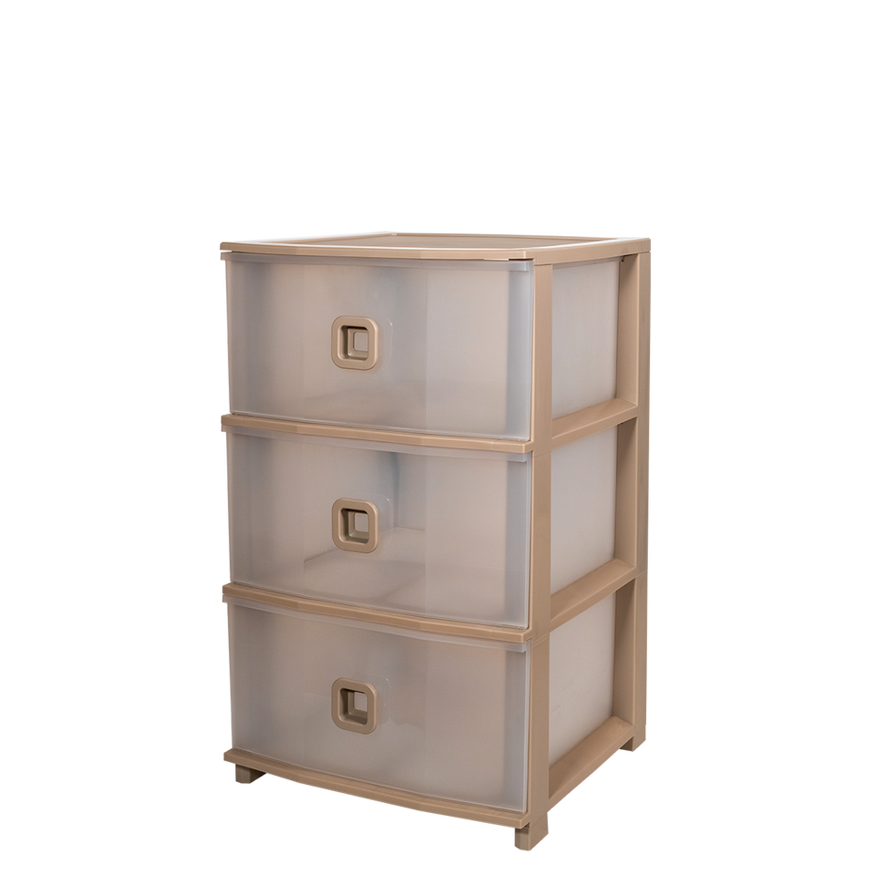 Pratika Plus Unité de rangement minimaliste empilable à 3 tiroirs en PP avec design moulé par injection pour salon, taupe, 375x370x610mm