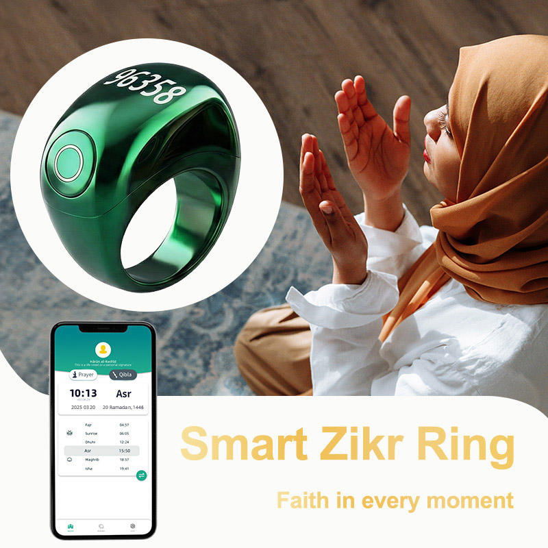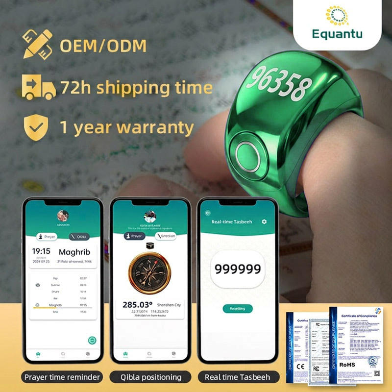Bague connectée intelligente pour musulmans avec fonction de rappel de prière, compteur numérique électronique Tasbeeh, compatible Android ou iOS, cadeaux pour le Hajj