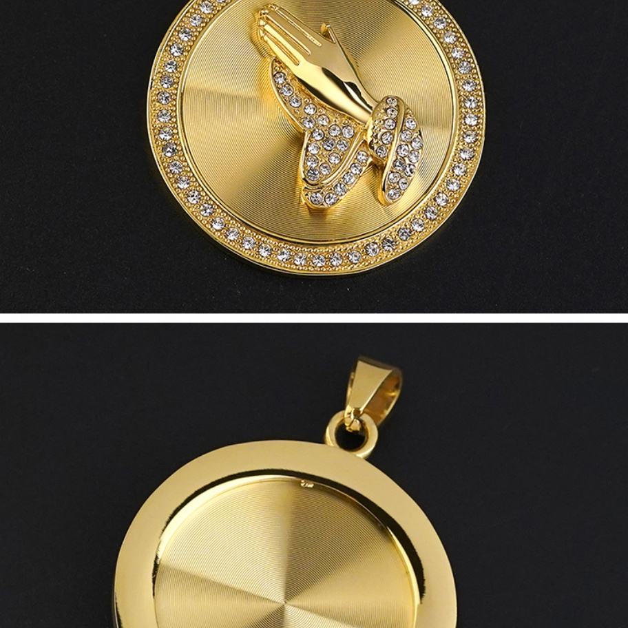 Colliers pendentifs main en prière en acier inoxydable plaqué or 18 carats avec pavé de cristaux, accessoires pour la fabrication de bijoux pour fournisseurs